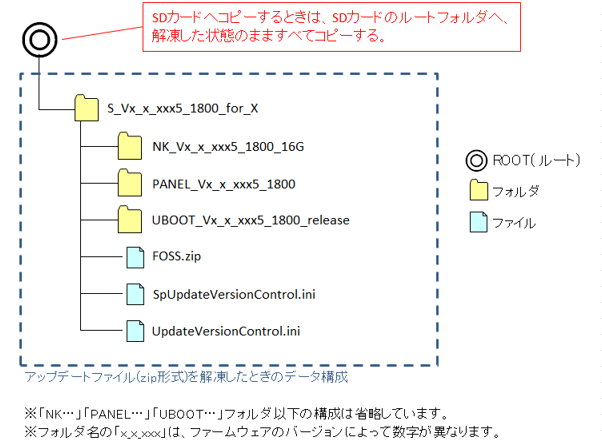 - SDカードには、ダウンロードしたアップデータ以外のフォルダ/ファイルを置かないようにしてください。