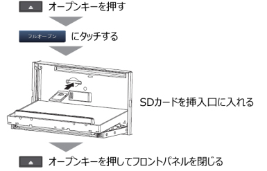 フロントパネルを開き、SDカードをいったん押し込んでから、つまんで引き出してください。(操作2.を参考にしてください)。 -