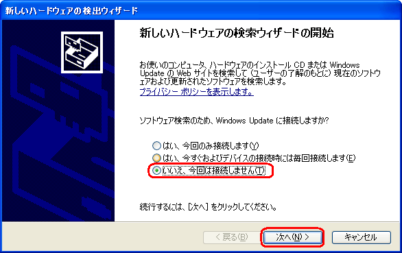 プレーヤーをUSBケーブルでパソコンと接続した時、「新しいハードウェアの検出ウィザード」が起動する場合があります。 その場合は、こちらの手順を参考にドライバのインストールを行ってください。 |