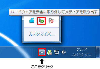 | 2.[ハードウェアを安全に取り外してメディアを取り出す]をクリックしてください。 | |