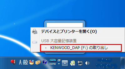 | 3.「KENWOOD_DAP (F:)の取り出し」をクリックしてください。 | |