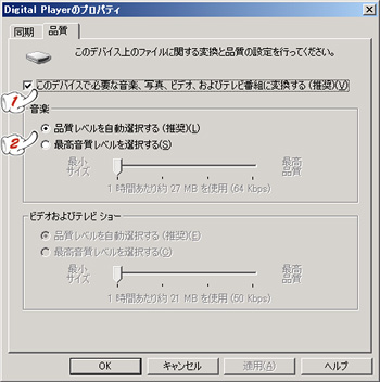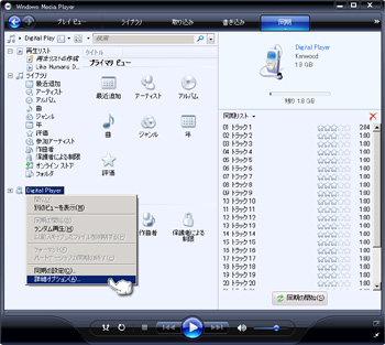 Media Kegが対応していないビットレートが高い曲を、Media Kegで再生できるビットレートに変換するように設定します。『Digital Player』で右クリックし、『詳細オプション』を押して、Media Kegのプロパティを開きます。