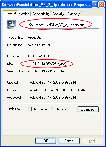 | Example: When the version of the updating KENWOOD Music Editor is 2.2.0, the version is displayed as follows: |