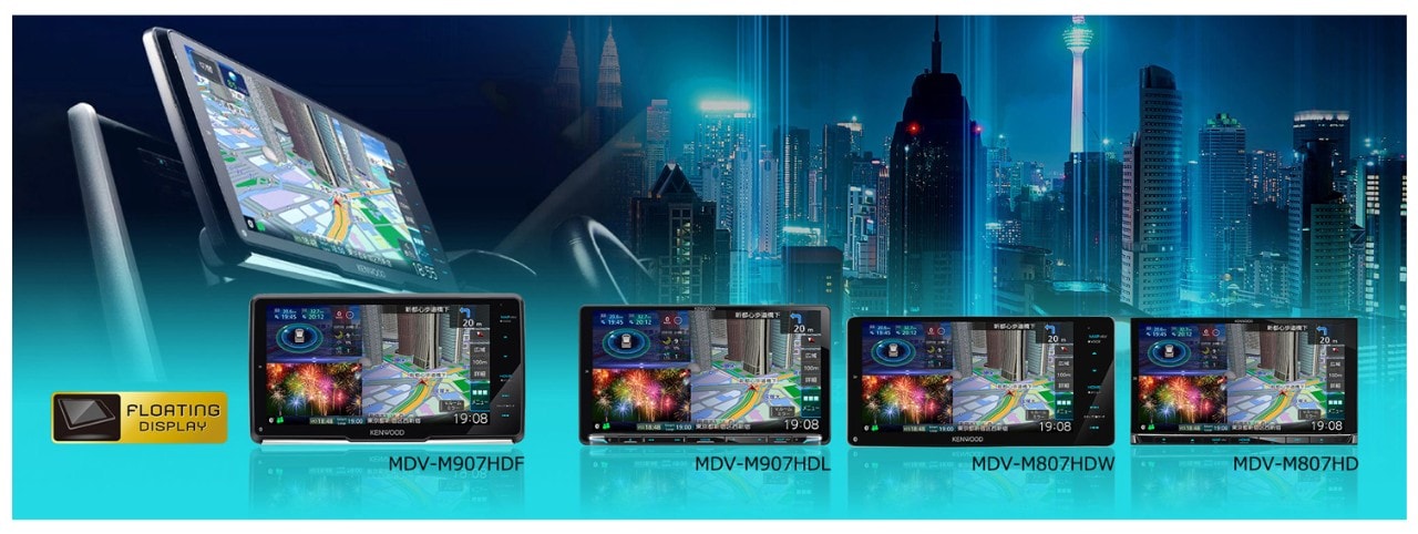 また、インダッシュタイプとして9V型の「MDV-M907HDL」と7V型の2モデル「MDV-M807HDW」「MDV-M807HD」もご用意。従来のインダッシュタイプに、新たに大画面フローティングタイプを追加してユーザーの選択肢を広げるとともに、より多くの車種に対応します。