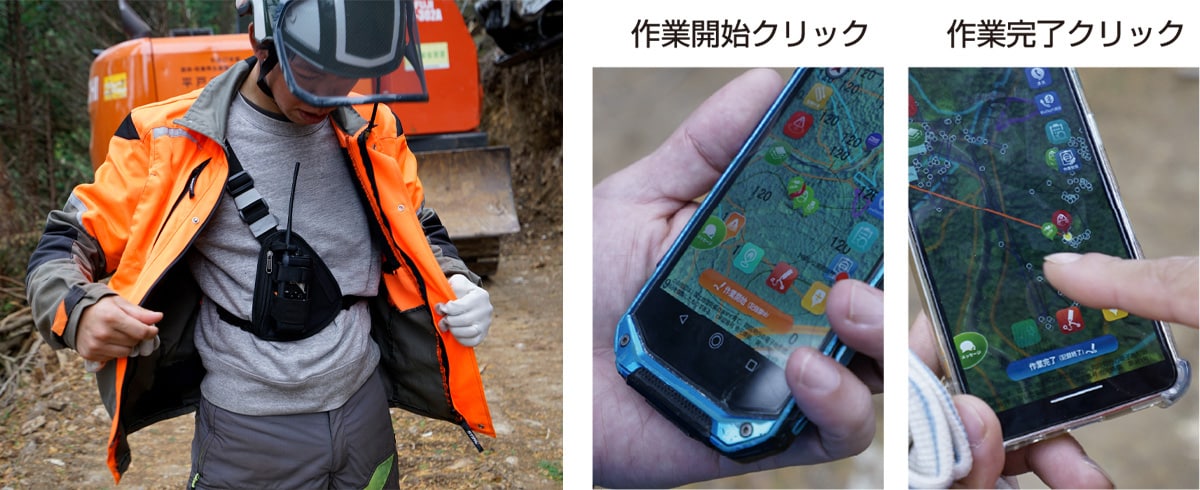 ICT機器の面倒なイメージなし。必要な時だけに無線機とスマホを使う。“ただ持っているだけ”で労働安全の確保。