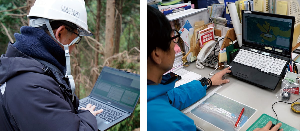 事務所の森林施業プランナーもPCやスマホで現場技能者の位置情報などを共有