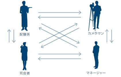 司会、配膳、カメラマンなど、多くのスタッフへ的確な指示を伝えることで、大人数のお客さまへのスムーズな応対ができます。