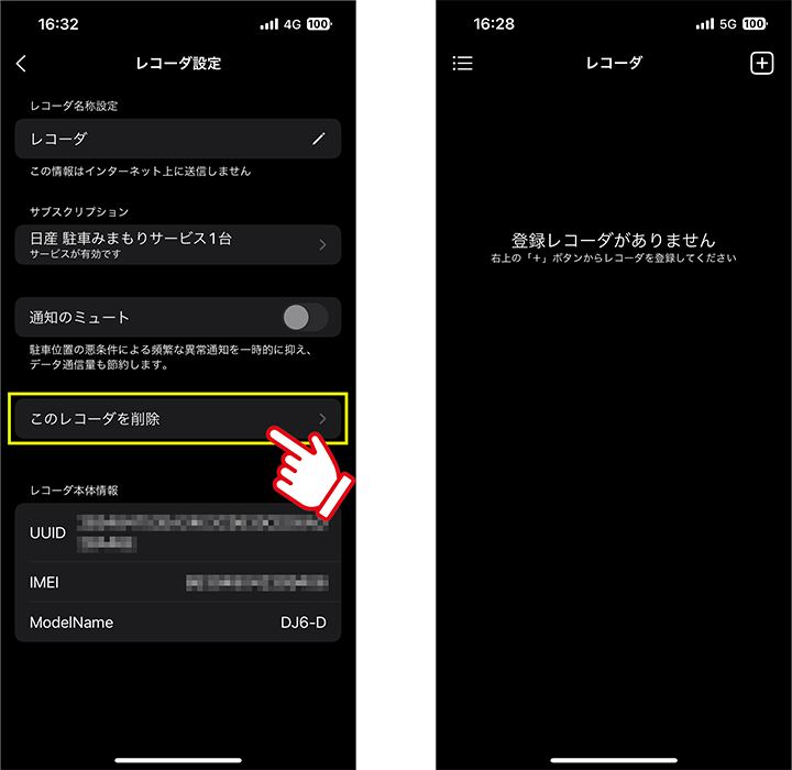 アプリTOPからドライブレコーダーを選択し、レコーダ右上の[⚙]をタップします。