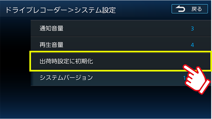 「はい」を選択し、ドライブレコーダーの初期化は完了です。