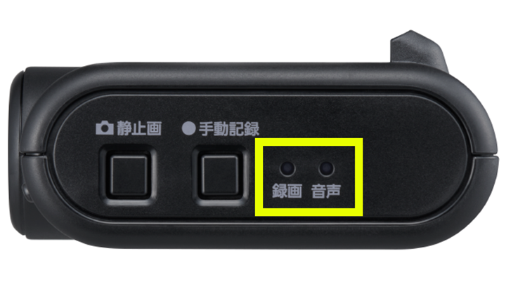 本体の電源がオフになると録画LED(青色)と音声LED(緑色)が消灯します。