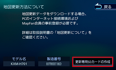 車両メーカー向けカーナビゲーションサポート情報 > 地図データアップデートについて(KXM-H701)