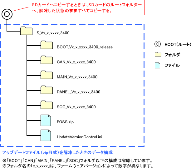 - SDカードには、ダウンロードしたアップデータ以外のフォルダ/ファイルを置かないようにしてください。