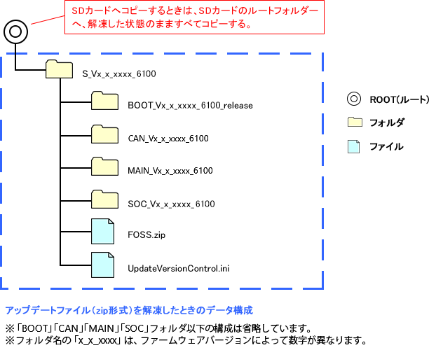 - SDカードには、ダウンロードしたアップデータ以外のフォルダ/ファイルを置かないようにしてください。