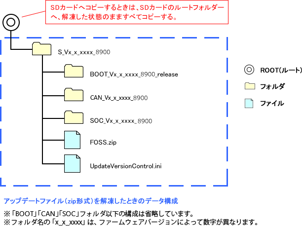 - SDカードには、ダウンロードしたアップデータ以外のフォルダ/ファイルを置かないようにしてください。