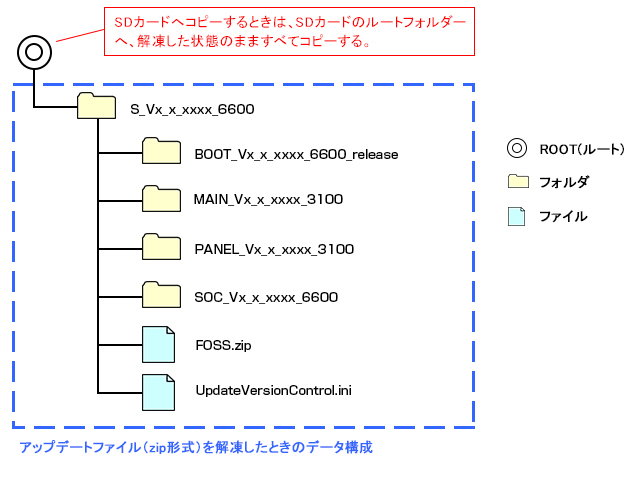 - 解凍後のアップデートファイルをSDカードへコピーする。