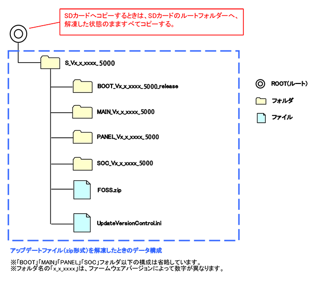 - SDカードには、ダウンロードしたアップデータ以外のフォルダ/ファイルを置かないようにしてください。