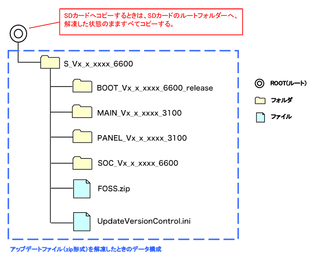 - 解凍後のアップデートファイルをSDカードへコピーする。
