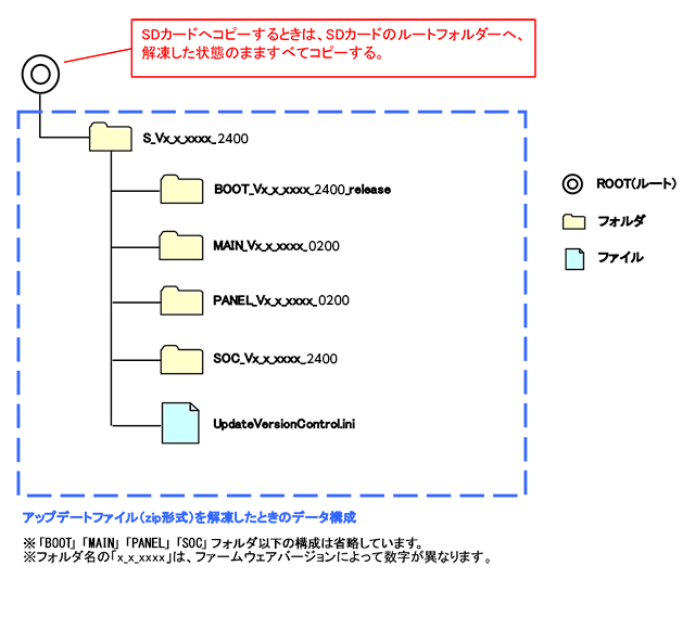 - SDカードには、ダウンロードしたアップデータ以外のフォルダ/ファイルを置かないようにしてください。