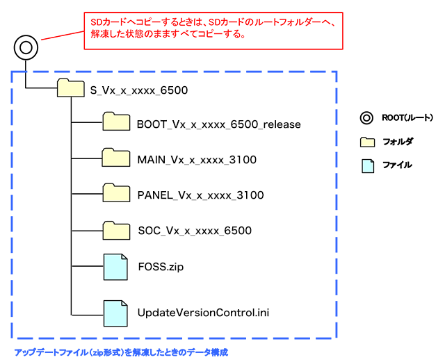 - 解凍後のアップデートファイルをSDカードへコピーする。
