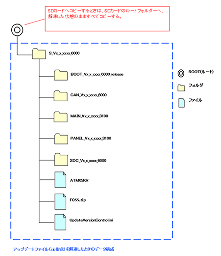- 解凍後のアップデートファイルをSDカードへコピーする。