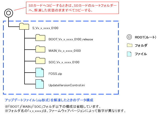 - SDカードには、ダウンロードしたアップデータ以外のフォルダ/ファイルを置かないようにしてください。