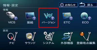下記の手順に従って、お使いのカーナビゲーションのファームウェアバージョンが、アップデート対象バージョンかどうかを確認してください。