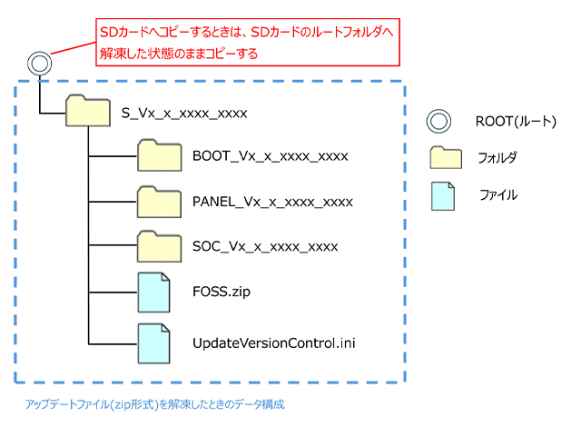 - SDカードには、ダウンロードしたアップデータ以外のフォルダ/ファイルを置かないようにしてください。