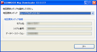 6. 表示されているデータの名称にお使いのナビゲーションのモデル名が入っていることを確認し、[次へ]をクリックします。