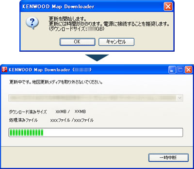 - ダウンロード中は地図更新専用SDカードを絶対に抜かないでください。地図更新専用SDカードが破損する場合があります。