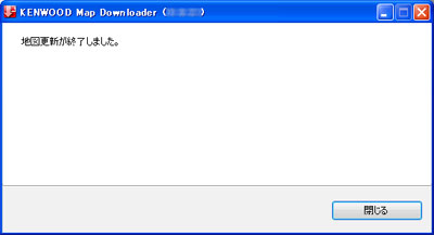 8. 「地図更新が終了しました」と表示されたら、[閉じる]をクリックしてMap Downloaderを終了し、地図更新専用SDカードを抜きます。