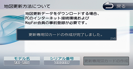 車両メーカー向けカーナビゲーションサポート情報 > 地図データバージョンアップ > 地図データのダウンロードについて > Step1:地図更新専用SDカードの作成(SKX-S801)