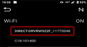 本体ラベルに記載してあるSSID部に該当する「DIRECT-DRVRW522F_XXXXXXXX」をタッチして、本体とWi-Fi接続する。