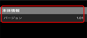 「本体情報」の「バージョン」が 1.01になっていれば確認完了です。