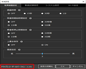 画面下の「ドライブレコーダーのバージョン」が 1.01になっていれば確認完了です。
