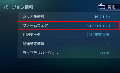 地図データのバージョンアップ、開通予定情報の更新を行う前にファームウェアバージョンが最新バージョンであるかを確認してください。