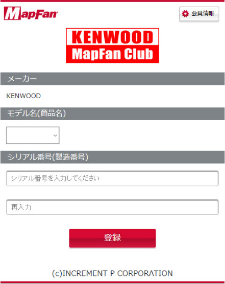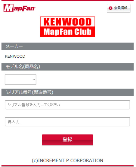 「KENWOOD MapFan Club」ご優待のお客様専用 会員登録
