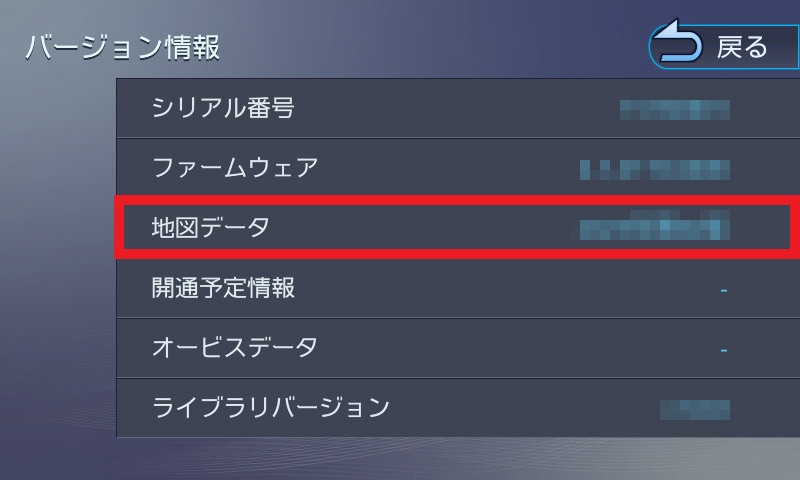 「地図データ」の項目を確認する。