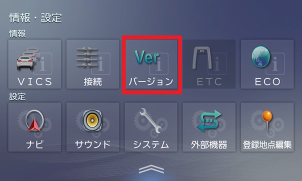 地図データ更新の前に、カーナビゲーション本体の現在のファームウェアと地図データのバージョン確認が必要です。