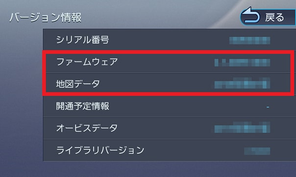 地図データ更新の前に、カーナビゲーション本体の現在のファームウェアと地図データのバージョン確認が必要です。
