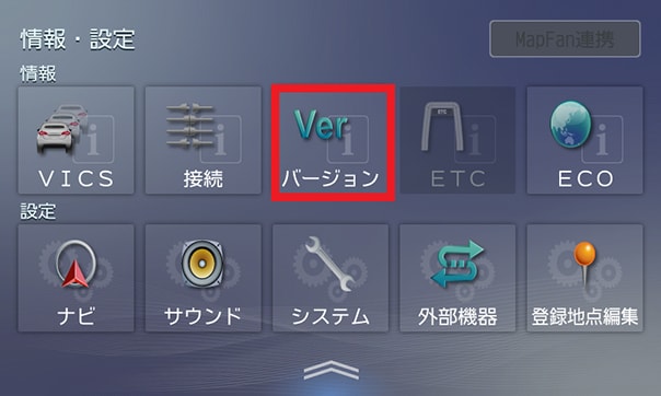 地図データ更新の前に、カーナビゲーション本体の現在のファームウェアと地図データのバージョン確認が必要です。