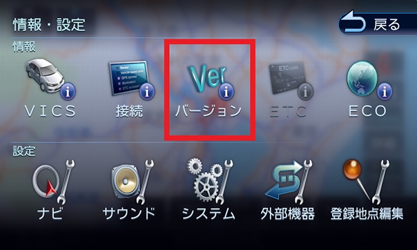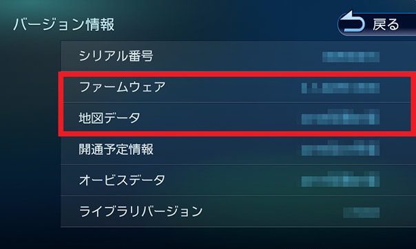 地図データ更新の前に、カーナビゲーション本体の現在のファームウェアと地図データのバージョン確認が必要です。
