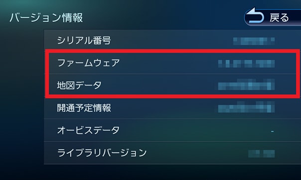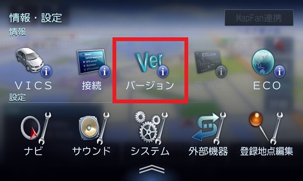 地図データ更新の前に、カーナビゲーション本体の現在のファームウェアと地図データのバージョン確認が必要です。