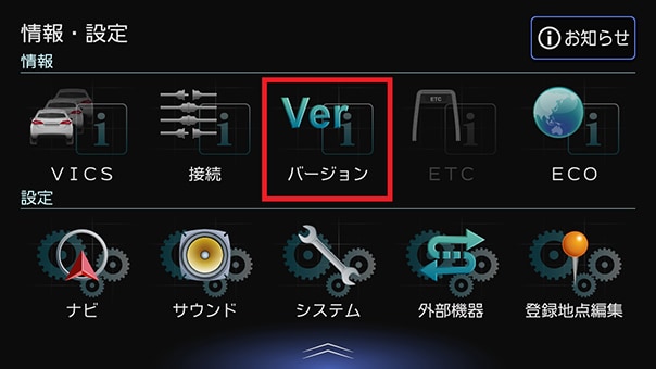 地図データ更新の前に、カーナビゲーション本体の現在のファームウェアと地図データのバージョン確認が必要です。