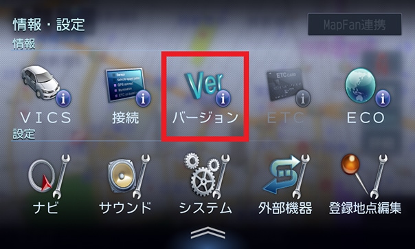 地図データ更新の前に、カーナビゲーション本体の現在のファームウェアと地図データのバージョン確認が必要です。