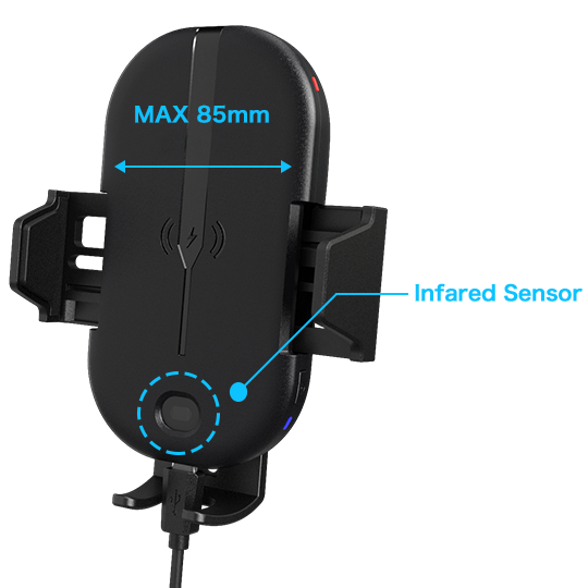 When the phone is placed near the infrared sensor, the clamping arms will automatically motorize open, allowing you to easily set the phone into the mount. After the phone has been placed into the mount, the clamping arms will automatically motorize closed to lock and hold the phone firmly in place.