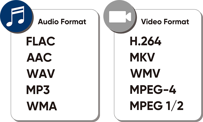 | Audio Decoder | MP3/ WMA/ WAV/ AAC/ FLAC | |||