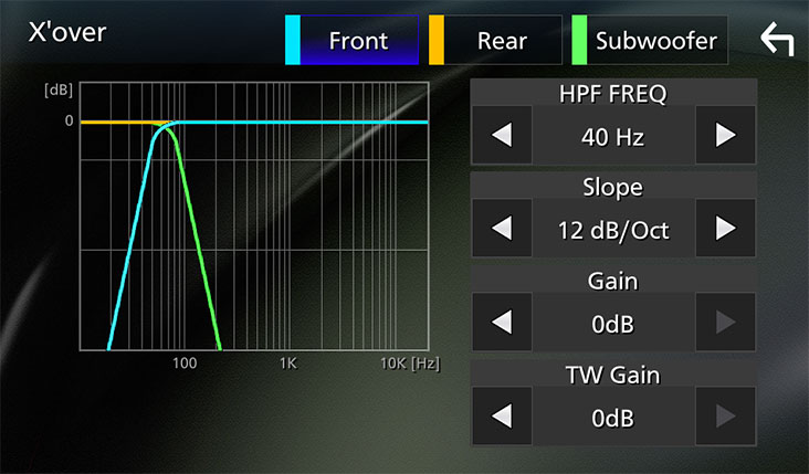 Use the graphic equalizer to tailor the sound quality to your unique tastes. Additional sound staging is available with the Time Alignment feature, designed to provide optimal sound performance.