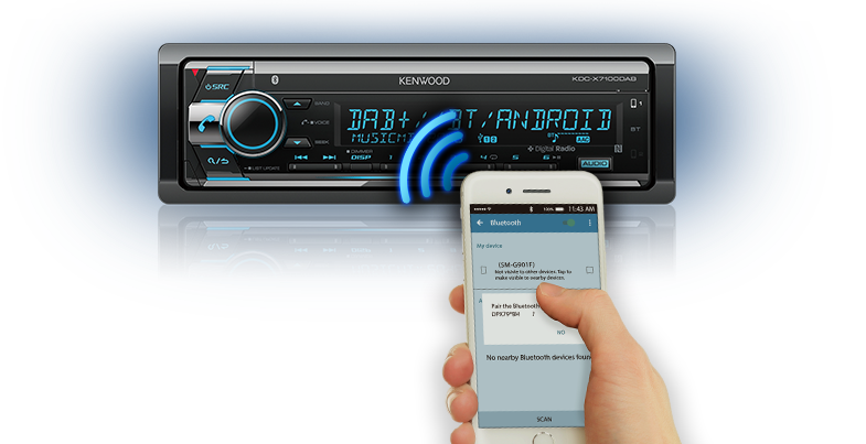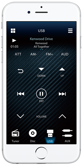 You can change sources or adjust audio settings like "13-Band EQ" or "Digital Time Alignment" from your iPhone or Android Smartphone. The "Kenwood Remote" App is available for both iOS and Android.