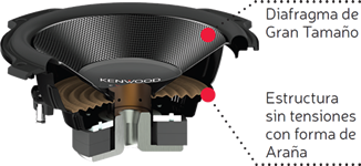 La salida de bajas frecuencias ha sido mejorada aumentando el área del cono sin cambiar el diámetro del hueco donde se aloja. Adoptando una “Estructura sin tensiones con forma de Araña” y un “Sistema Térmico Eficiente” la durabilidad mecánica y térmica ha sido también enormemente mejorada ofreciendo unos poderosos a la vez que suaves graves de duradera fiabilidad.