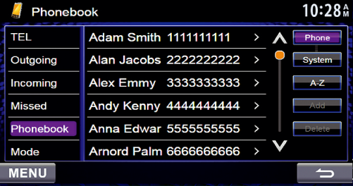 Access Phonebook, Last Calls, and Missed Calls from the receiver and make hands-free calls.